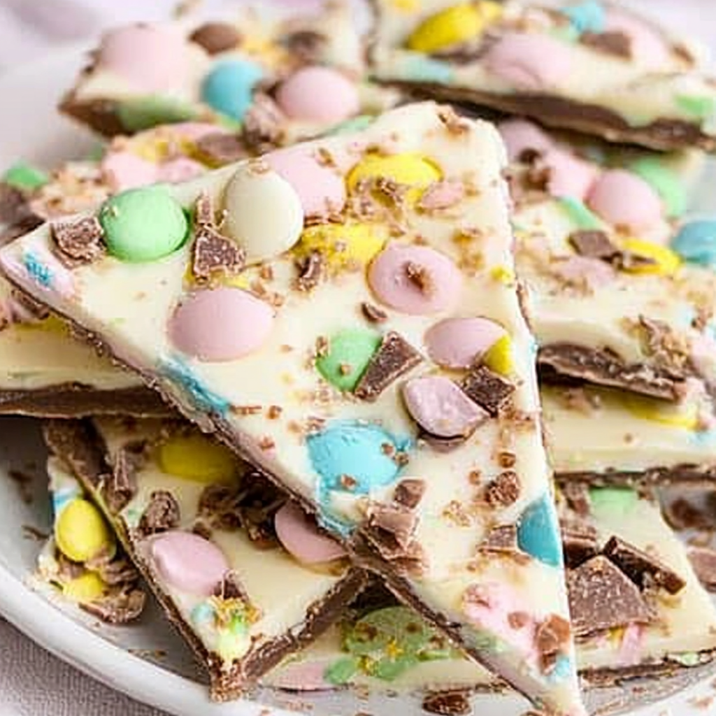 - Arrange the bark on a decorative platter as part of an Easter dessert table. It adds color and whimsy, complementing other treats like cookies and cupcakes.