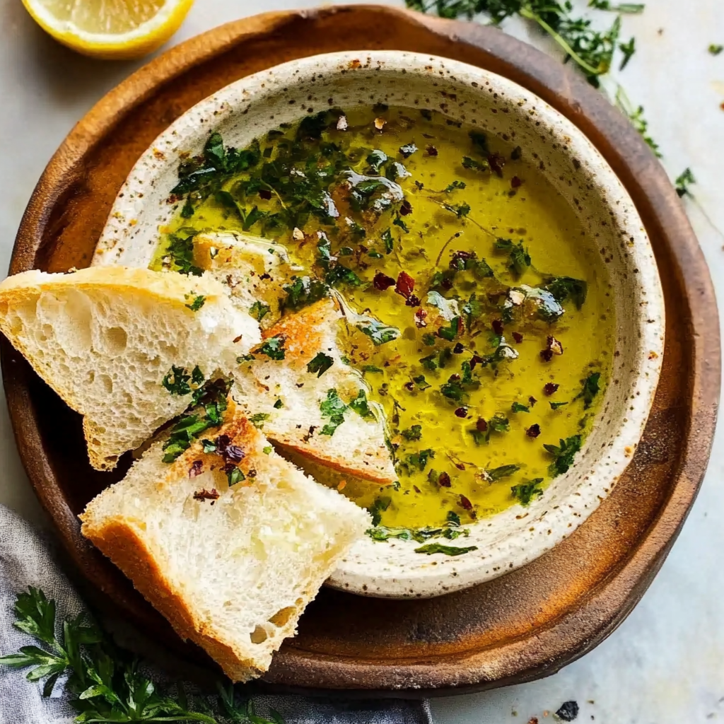 - Use a fresh baguette or ciabatta for dipping. The crusty texture holds up well against the olive oil and herb mixture.
