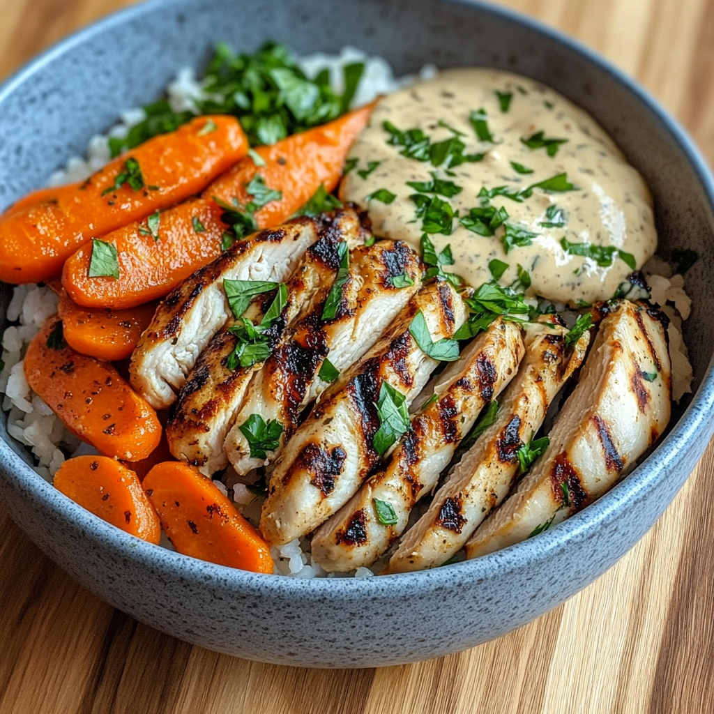 Indulge in the delightful flavors of this Grilled Chicken Rice Bowl with Creamy Herb Sauce & Carrots, a dish that perfectly marries juicy grilled chicken with fluffy brown rice and vibrant carrots. Topped with a rich, creamy herb sauce, this bowl is not only aesthetically pleasing but also incredibly versatile for any occasion—be it a quick weeknight dinner or meal prep for the week ahead. With its explosion of flavors and nutritious ingredients, this recipe will quickly become a favorite.