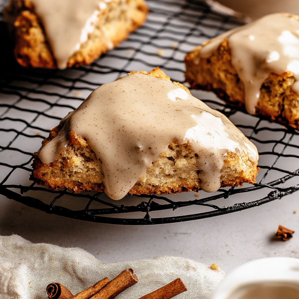 Indulge in the warm, spiced goodness of Homemade Chai Scones with Maple Chai Glaze. These flaky, buttery scones are infused with aromatic chai spices such as cinnamon, ginger, and cardamom, making them a delightful treat for breakfast, tea time, or any gathering. Topped with a sweet maple chai glaze, these scones are perfect for cozy moments in fall and winter.