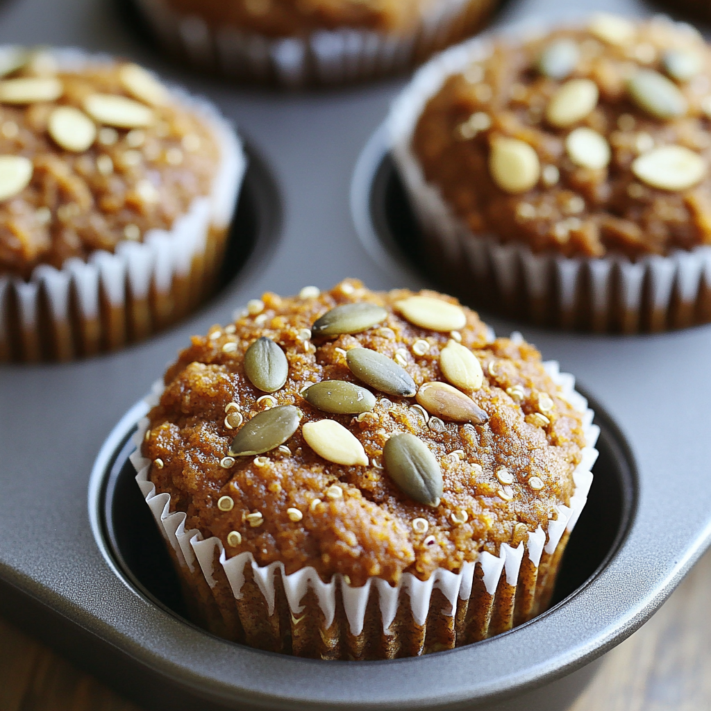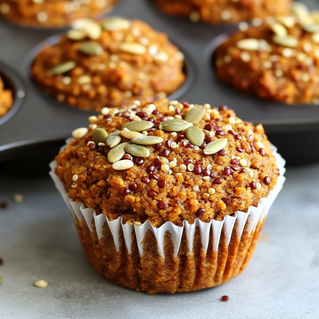 These muffins are made with nutritious ingredients like quinoa flakes, oat flour, and pumpkin puree, providing fiber and vitamins without excess sugar or fat.
